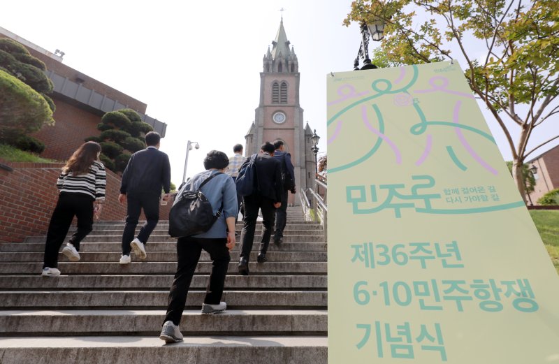 오늘 처음으로 기념식이 열린 명동대성당은 천주교정의구현전국사제단의 박종철 고문치사사건 조작 은폐 성명 발표가 있었고, 민주항쟁 당시 농성투쟁이 이뤄졌던 민주화운동의 상징적 장소다.