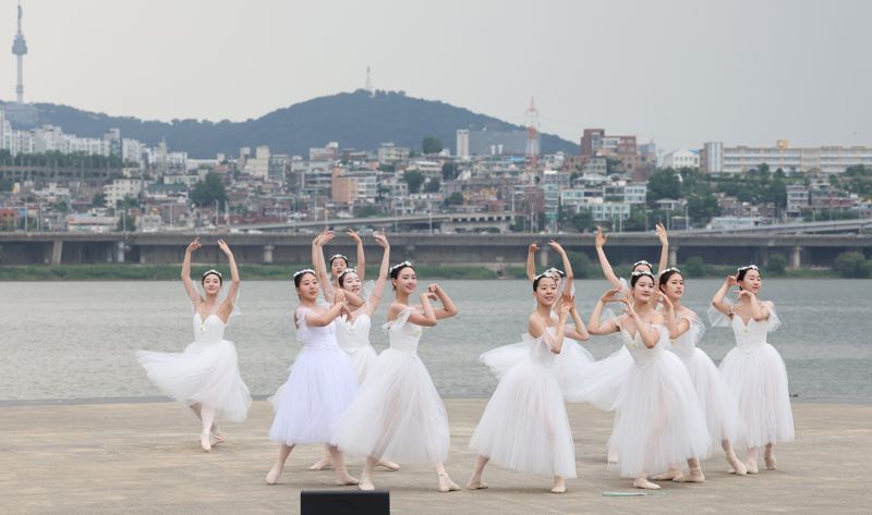 세계인의 환경(물)-춤 축제 글로벌 워터댄스가 10일 오후 서울 서초구 한강공원 세빛섬야외무대에서 열렸다. 성균관대 무용과 학생들이 한강을 배경으로 공연하고 있다.이 행사는 60개국, 100여개 이상의 도시에서 매년 6월 동시 공연하고 있다. 영상.사진=김범석 기자