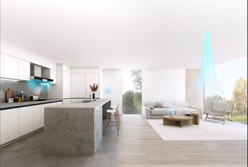 키친플러스는 3D 에어후드와 청정환기시스템을 통합해 미세먼지와 라돈, 휘발성 유기화합물(VOCs), 요리 매연 등을 통합적으로 관리하는 솔루션이다.