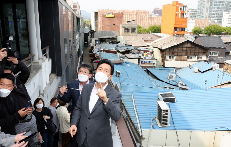 (서울=뉴스1) 전준우 기자 = 오세훈 서울시장이 박원순 전 시장 재임 시절 171개로 쪼갠 세운 재개발 구역을 20여개로 묶어 통합 개발한다. 도심 녹지 축을 중심으로 구역별 중앙 녹지를 조성하고, 용적률 최대 1500%를 적용한 초고밀 개발을 본격 추진한다.