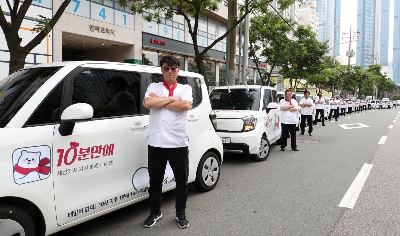 '10분만에'는 근거리 배차방식을 적용해 효율적인 배송 시스템으로 운영되며, 35대 레이전용 차량으로 음식을 안전하게 배달한다.