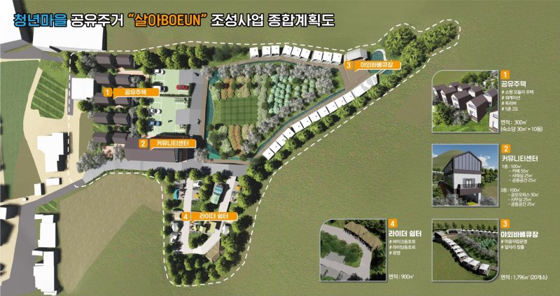 군은 확보한 특별교부세 10억원과 도·군비 등 총사업비 21억원을 투입, 회인면 중앙리 일원에 청년 공유주거 10개소와 커뮤니티센터 1개소를 내년 하반기까지 조성할 계획이다.