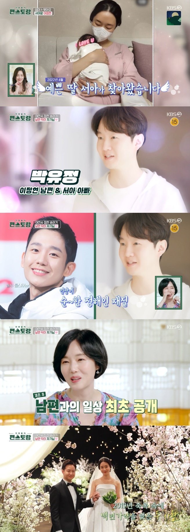 이정현은 시청자들에게 반가운 인사를 건넸다. 그러면서 "그 사이에 제가 임신하고 출산을 했다"라며 지난해 4월 딸 서아를 낳았다고 전했다. 이정현은 "임신 준비하면서 걱정이 많았는데 서아가 건강하게 태어나 줘서 고맙다"라고 털어놨다.