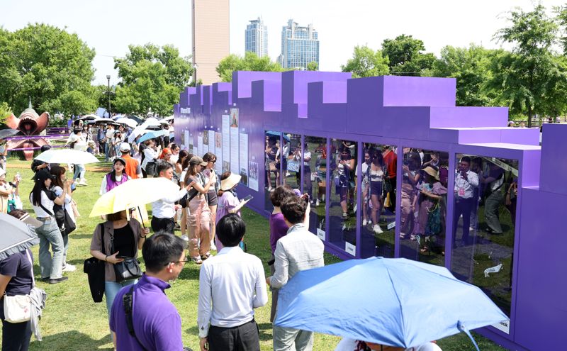 17일 서울 여의도 한강공원 일대에서 '방탄소년단(BTS) 10주년 페스타(FESTA)' 행사가 열렸다. 행사장을 찾은 팬들이 전시를 즐기고 있다.
