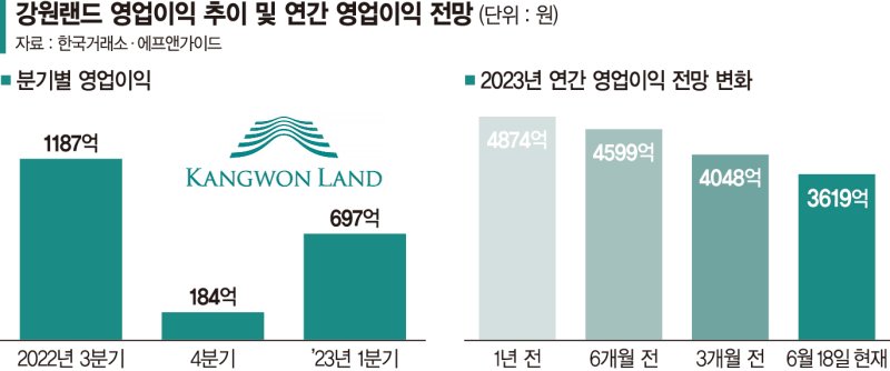 '코로나 엔데믹의 수혜주로 꼽혔지만 팬데믹 시절보다 오히려 주가가 떨어진 종목이 있다. 국내 유일의 내국인 카지노 강원랜드다. 실적이 오르면 주가가 올랐던 예전과 달리, 실적이 회복세를 보이고 있음에도 주가는 내리막이다. 전문가들은 ‘외부의 적’에 의해 모멘텀이 깎이고 있다고 지적한다.
