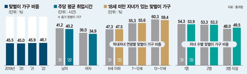 맞벌이 가구 비중은 46.1%로 2015년 통계 작성 이후 역대 최고치를 기록했다.