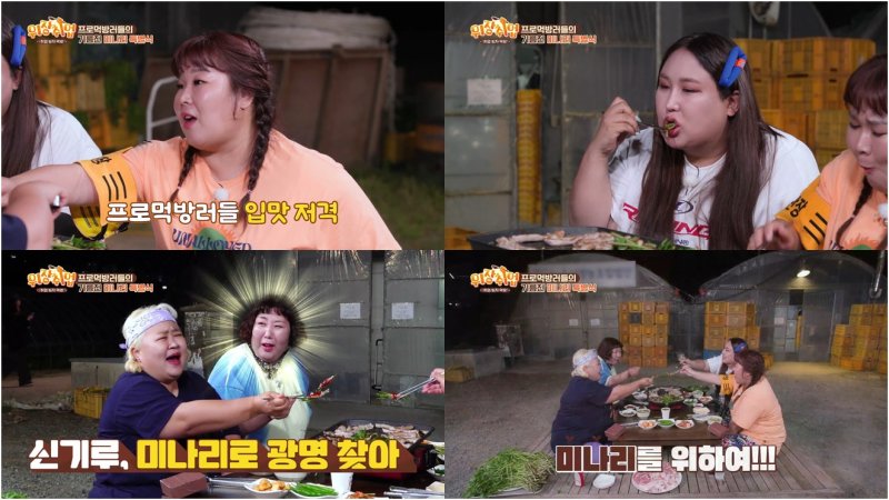 신기루의 현실 부부 에피소드에 다들 입을 틀어막는다. 와중 신기루는 미나리쌈을 만들어 먹으며 "미나리는 (아무리 먹어도) 배가 안 부른 것 같다"고 분위기를 띄운다. 이에 풍자는 "언니가 배부름을 아냐"고 말해 웃음을 자아낸다.