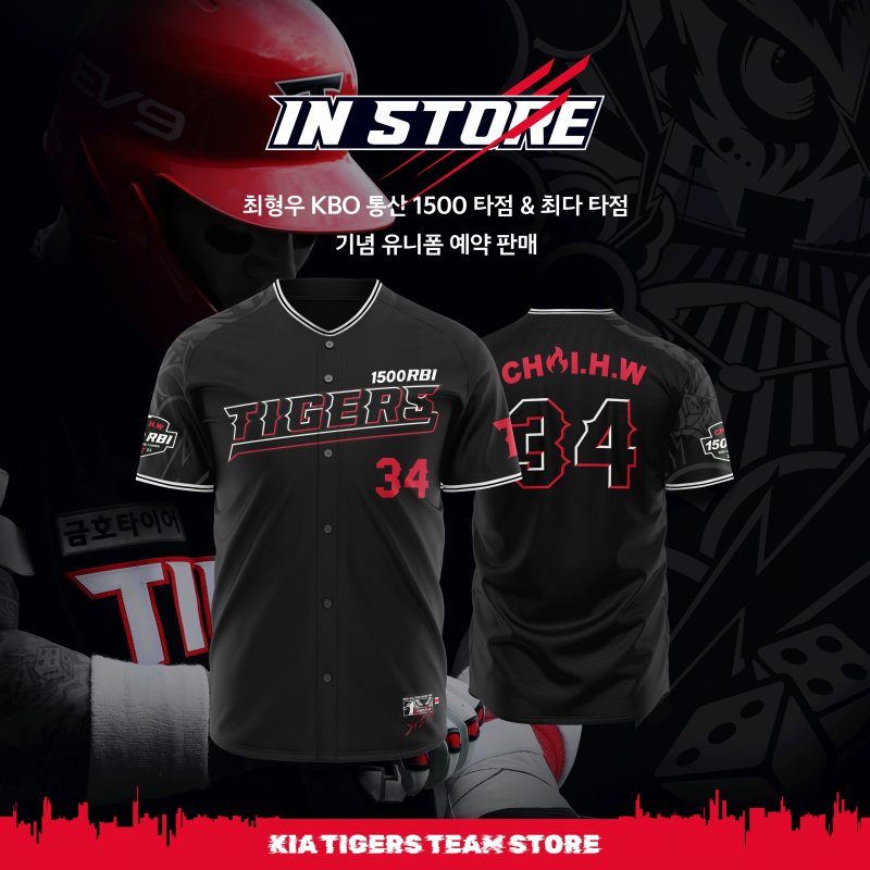 KIA는 최형우의 통산 1500타점 달성 기념 유니폼과 모자, 기념구를 22일부터 예약 판매한다고 21일 밝혔다.