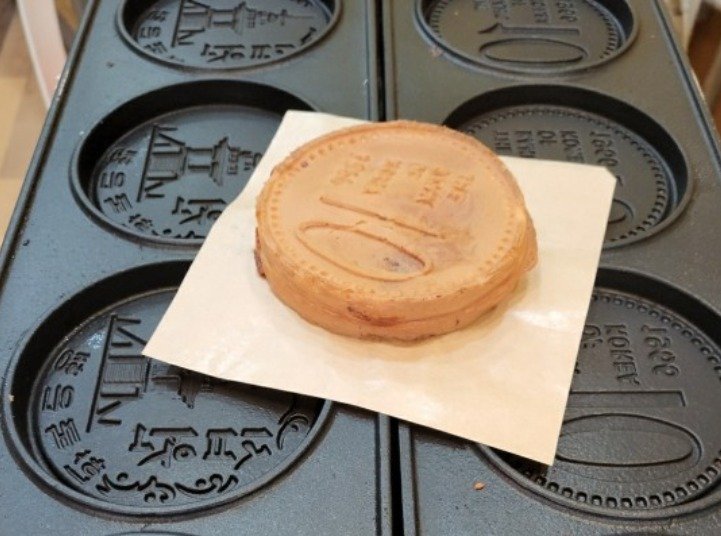 경주 십원빵은 1966년부터 발행된 다보탑이 새겨진 10원 동전을 모방한 빵이다.