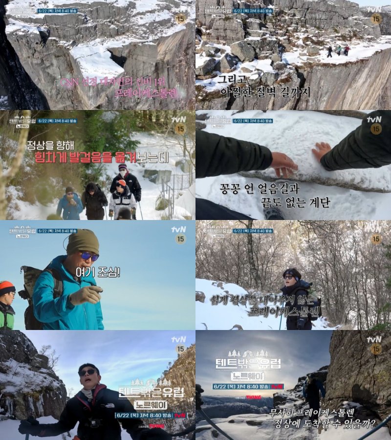 22일 오후 8시 40분 방송하는 tvN '텐트 밖은 유럽 - 노르웨이 편'에서는 프레이케스톨렌 트레킹 도전기가 펼쳐진다.