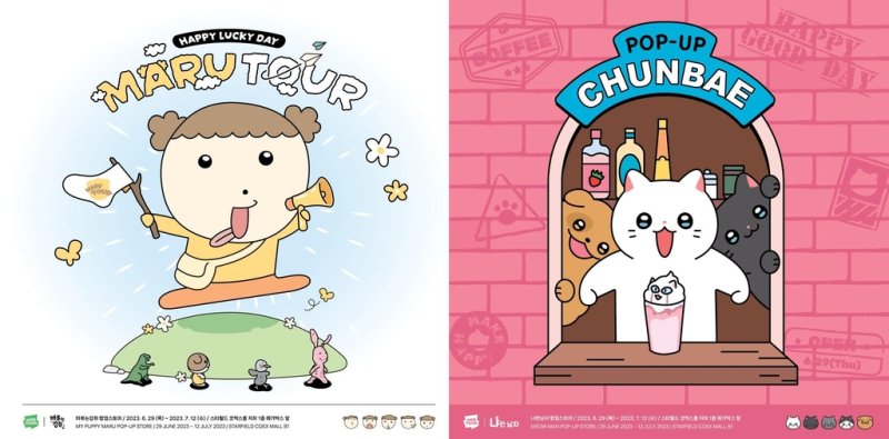 네이버웹툰은 29일부터 다음달 12일까지 서울 강남구 스타필드 코엑스몰에서 인기 웹툰 '마루는 강쥐', '냐한남자' 팝업스토어(임시매장)를 연다고 26일 밝혔다.