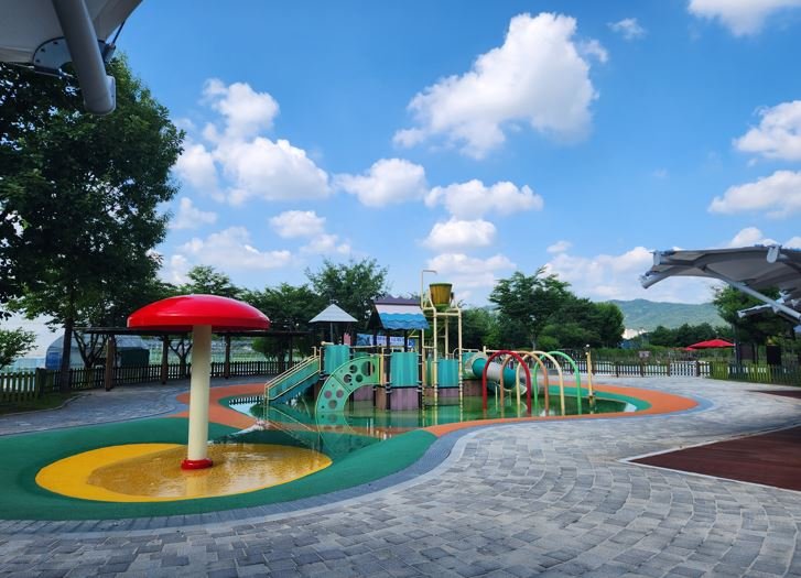 발물놀이터는 수심이 깊지 않아 어린이도 안전하게 즐길 수 있는 물놀이 시설이다.
