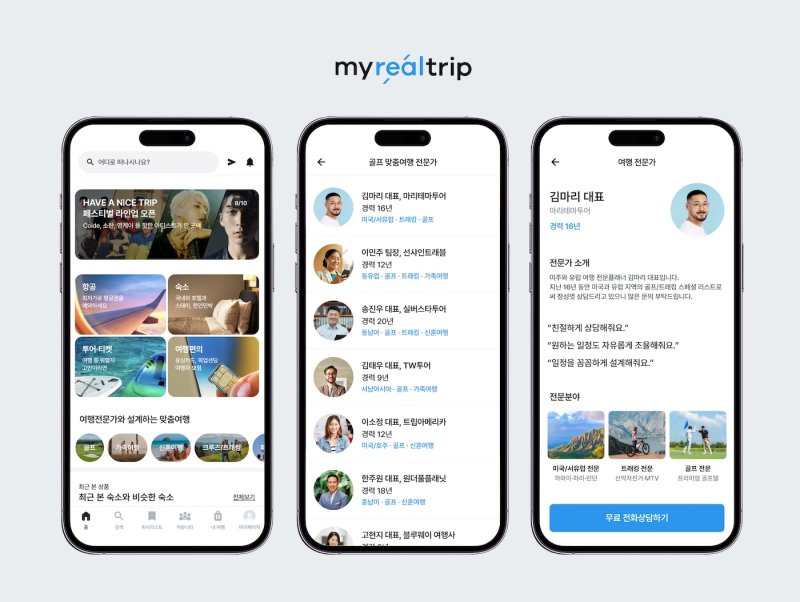 ▲마이리얼트립은 전국의 여행사·대리점들과 제휴를 맺어 여행 컨설팅에서 맞춤형 플랜까지 제공하는 '여행 전문가 연결 서비스'를 선보인다. 이 서비스는 고객이 직접 오프라인 대리점에 찾아가야 했던 1대1 패키지여행 상담을 여행사·대리점과의 협업 하에 온라인에서 제공하기 위해 출시됐다. 고객은 마이리얼트립 서비스 화면을 통해 전국의 테마별 여행사, 소속 직원을 찾아 관련 경력과 보유 상품 등을 쉽게 확인·비교할 수 있다. 여행사와의 전화 연결을 통해 여행 패키지 소개는 물론 수요에 맞춰 일정이나 구성 변경도 합리적인 가격에 설계가 가능하다.
