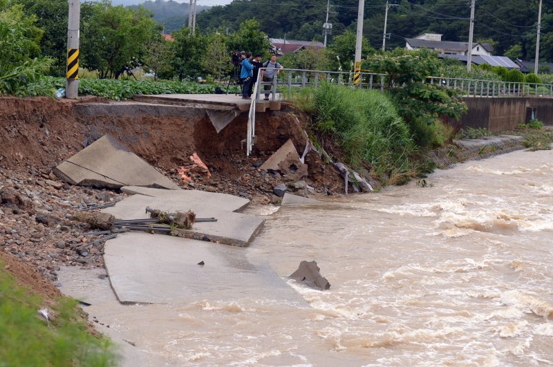 옆 마을 주민도 걱정에 여념이 없었다. 장순금씨(67·여)는 "새벽 4시부터 집에 물이 차 심장이 벌렁벌렁했다"며 "겨우 정리하는 듯했더니 이번엔 제방이 유실됐다기에 또 물이 찰까봐 걱정되는 마음에 나왔다. 장마 피해 없이 지나갔으면 좋겠다"고 말했다.