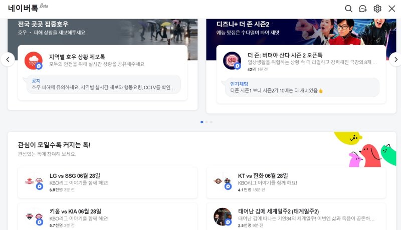 구체적으로 △현재 참여 중인 오픈톡 △개인 관심사에 맞춘 추천 오픈톡 △인기 오픈톡이 뜬다.