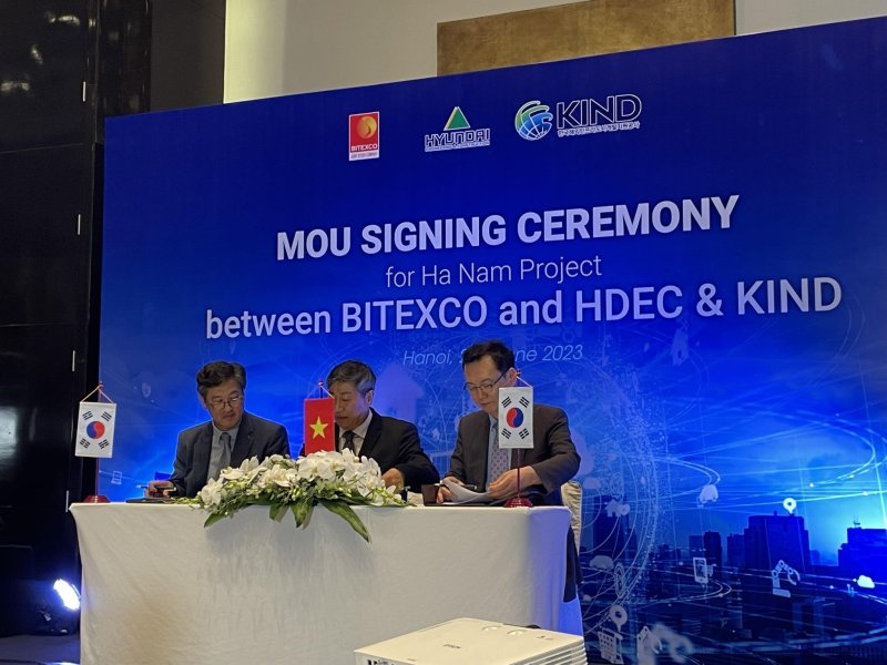 (서울=뉴스1) 신현우 기자 = 한국해외인프라도시개발지원공사(KIND)는 지난 22일 베트남 하노이에서 현대건설·비텍스코와 ‘베트남 하남성 내 스마트신도시 개발사업 협력을 위한 3자 간 양해각서(MOU)’를 체결했다고 29일 밝혔다.