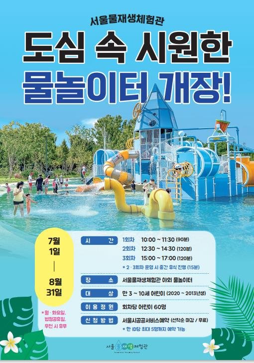 물놀이터는 8월 31일까지 오전 10시~오후 5시까지 운영되며 매주 월·화요일은 정기 휴일이다. 8월 1주차와 2주차 주말에는 오후 8시30분까지 연장 운영된다. 이날 방문한 이용객을 대상으로는 물재생 퀴즈, 돌림판 게임 등 각종 행사도 개최된다.