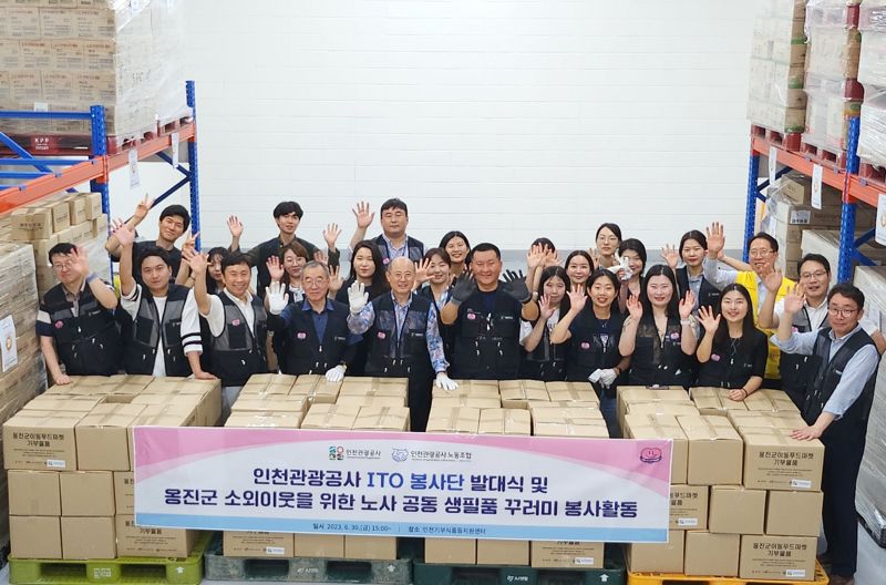 공사는 지난 6월 30일 ITO 봉사단 발대식 개최 후 노동조합과 사내 봉사 동호회인 ITO 나눔이 회원들과 함께 옹진군 이동푸드마켓 이용자 200명을 대상으로 한 300만원 상당의 생필품 꾸러미 상자를 직접 포장하고 나르는 봉사활동을 실시했다.