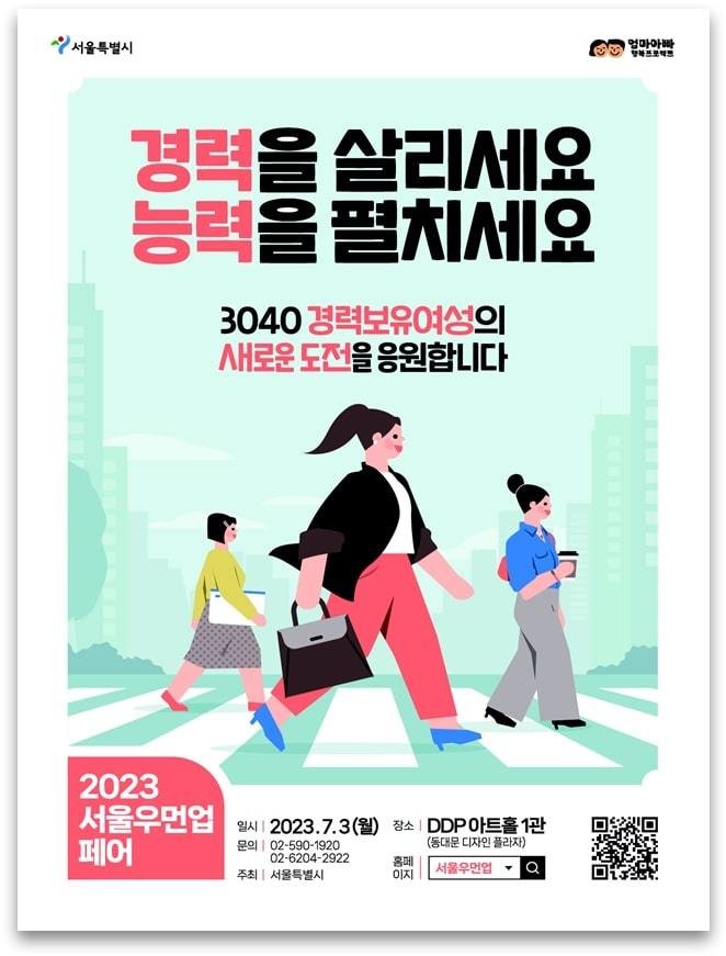 (서울=뉴스1) 박우영 기자 = 서울시는 '서울우먼업프로젝트' 참여자들에게 취업 기회를 제공하기 위해 3일 오전 11시부터 오후 6시까지 '2023 서울우먼업 페어'를 개최한다.
