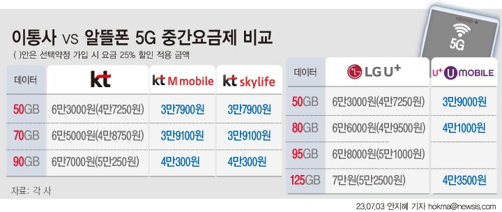◆이통사 5G 온라인 중간요금제과 비교해도 알뜰폰이 유리