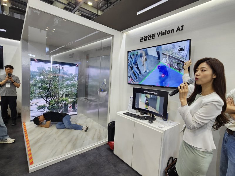 SK텔레콤은 5G 기술을 이용해 드론과 로봇으로 사람이 접근하기 어려운 공간에 작업하는 기술을 전시했다. 실제로 SK텔레콤은 전국에 위치한 신호탑 꼭대기 점검을 모두 드론으로 하고 있다. 또 폐쇄회로(CC)TV와 AI 기술을 접목해 엘리베이터 내 화재 등이 발생하면 이를 실시간으로 감지하는 산업안전 비전(Vision) AI 기술 등도 선보였다.