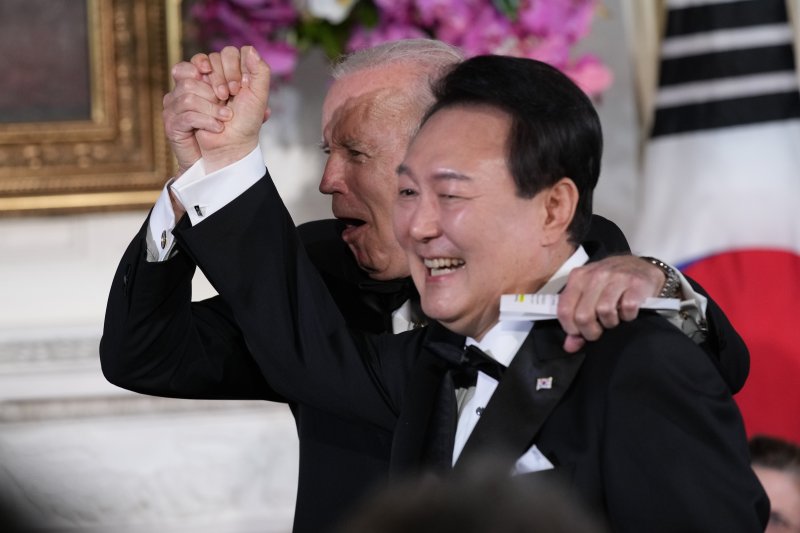 이 8장의 사진 중 3장은 윤 대통령의 지난 4월 미국 국빈 방문 당시의 모습으로 백악관 공식 만찬에서 윤 대통령과 조 바이든 대통령이 어깨동무를 한 사진, 윤 대통령과 바이든 대통령의 공동기자회견 장면, 미국 상·하원 합동연설 장면 등이다.