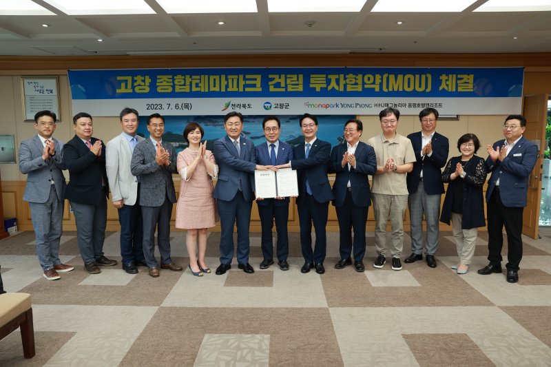이날 오후 전북도청 도지사실에서 심덕섭 고창군수, 김관영 전북도지사, 용평리조트 신달순 대표 등이 참석한 가운데 ‘고창종합테마파크(가칭) 조성사업 투자협약식’이 진행됐다.
