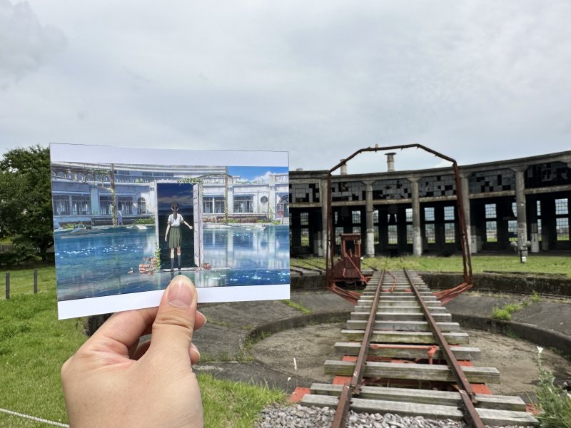 역에서 10분정도 거리에 과거 증기기관차의 차고지로 쓰이던 분고모리 기관고가 있다. 원형의 돔구조에 이가 빠진 유리창, 원형의 구조에 서있는 철골에 상상력을 입히면 영화의 장면이 떠오른다. 모티브가 된 지역이기는 하나 완전히 같지는 않다. 또 내부를 들어갈 수 없기 때문에 포토스팟으로 활용하기는 어렵다.