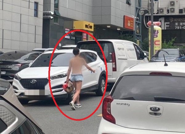대구에서 상의 벗은 여성이 거리 걷는 모습 포착돼