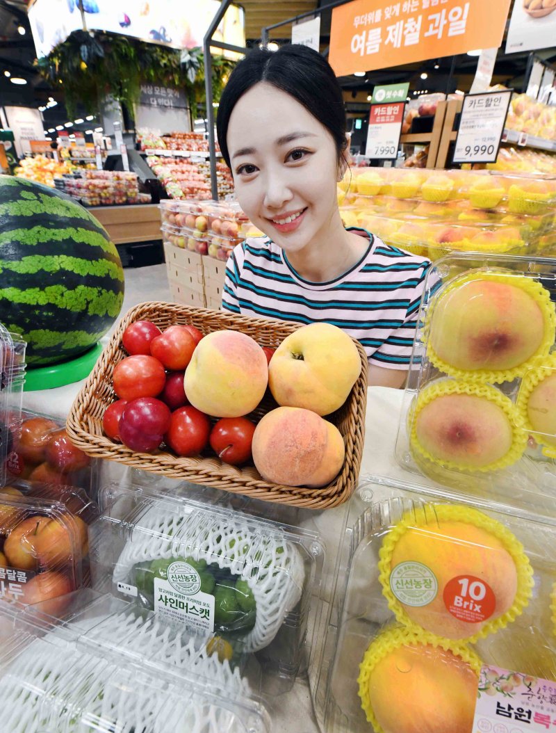 행사카드 결제 시 부드러운 복숭아, 남원 춘향愛(애)인 복숭아는 6000원 할인해 각 1만1990원, 9990원에 판매하고 수박 전 품목은 3000원 할인한다. 체리자두는 2000원 저렴하게 선보인다.