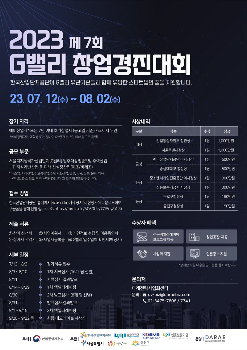 [세종=뉴시스]임소현 기자 = 한국산업단지공단 서울지역본부가 '2023 제7회 G밸리 창업경진대회'를 개최한다고 12일 밝혔다.