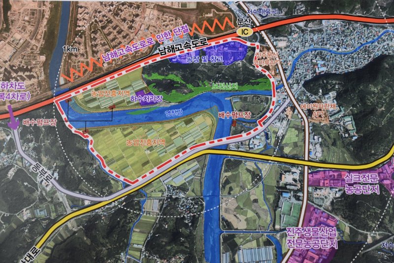 특히 진주 문산 공공주택지구와 진주역(KTX, SRT), 진주여객자동차터미널을 연결하는 교통망 확충으로 광역철도역과 터미널까지 10분대 접근이 가능한 서부경남 광역교통의 요충지로 새롭게 정비하고, 지구 내 영천강을 생태하천으로 만들어 충분한 휴식공간을 제공한다는 계획이다.