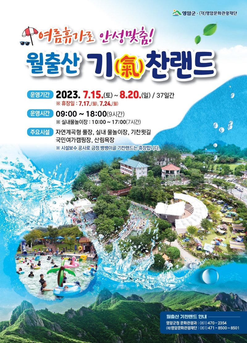영암군 관계자는 "월출산 자락에서 관광객이 시원한 물놀이를 안전하게 즐길 수 있도록 시설 점검, 환경 정비 등 손님맞이에 최선을 다하고 있다"고 밝혔다.