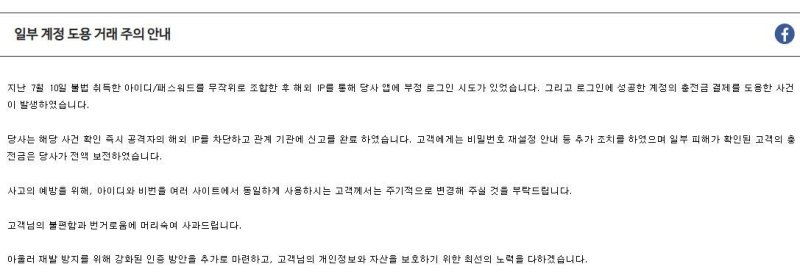 스타벅스 코리아는 공지를 통해 "해당 사건 확인 즉시 공격자의 해외 IP를 차단하고 관계 기관에 신고를 완료했다"며 "소비자에게는 비밀번호 재설정 안내 등 추가 조치를 했고, 일부 피해가 확인된 소비자의 충전금은 전액 보전했다"고 밝혔다.
