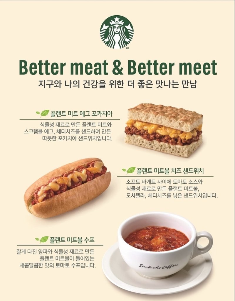 (서울=연합뉴스) 신선미 기자 = 스타벅스 코리아는 대안육(대체육)을 활용한 메뉴인 '플랜트 미트볼 치즈 샌드위치', '플랜트 미트 에그 포카치아', '플랜트 미트볼 수프' 3종이 출시 2주 만에 누적 10만개 이상 판매됐다고 16일 밝혔다.