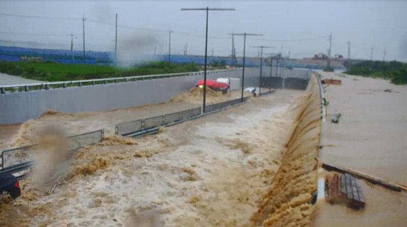 물은 순식간에 도로를 타고 저지대인 궁평지하차도로 밀려갔고, 오전 8시45분 시내버스를 비롯해 차량 십여대가 고립된 채 지하도는 물에 잠겼다.