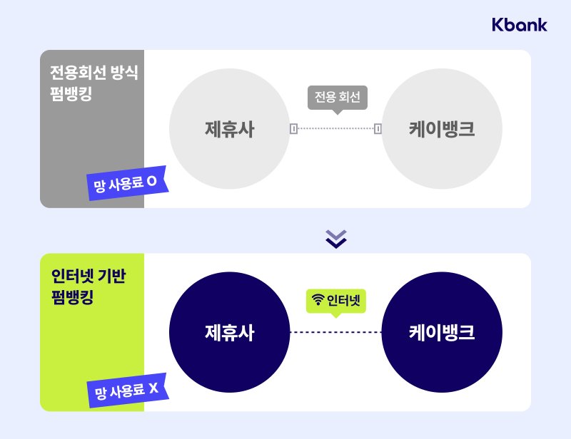인터넷 기반 펌뱅킹은 제휴사가 별도의 전용회선 구축이나 회선 이용에 따른 비용 부담 없이 펌뱅킹 서비스를 이용할 수 있어 시간과 비용 절약이 가능하다. 제휴사는 상품·서비스 구현에 필요한 펌뱅킹 서비스를 필요한 만큼만 이용하면 된다.
