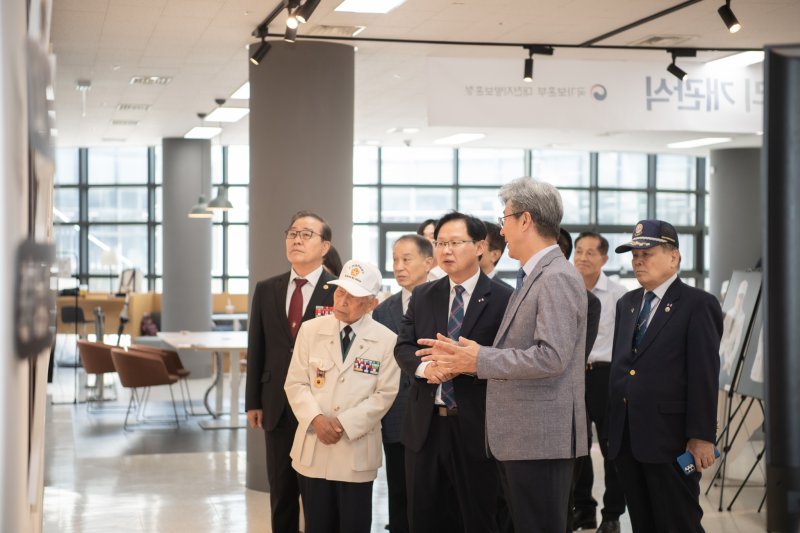 [대전=뉴시스]유순상 기자 = 충남대학교와 대전지방보훈청은 17일 중앙도서관 지하 1층에서 사진전 '영웅갤러리'를 개막했다.