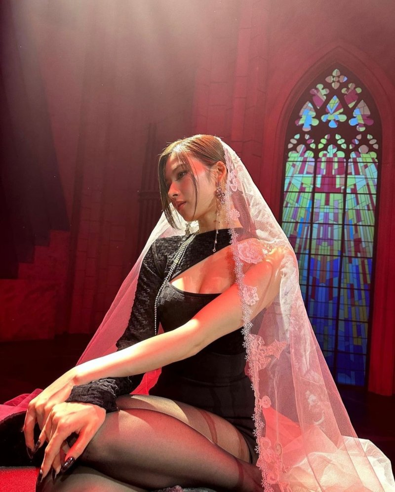 사나는 17일 자신의 소셜미디어에 "Do not touch(두 낫 터치)"라고 적고, 트와이스 첫 유닛 미사모(MISAMO)의 일본 데뷔앨범 현장에서 찍은 사진 여러 장을 공개했다. 사진 속 사나는 한 성당을 배경으로 면사포를 쓰고 도발적인 포즈를 취하고 있다. 가슴 라인이 그대로 드러나는 파격 패션이 시선을 끈다. 사나는 고혹적 눈빛과 남다른 볼륨감을 드러내며 섹시한 매력을 발산했다.