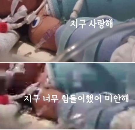 화면을 보던 A씨는 들려오는 간호사의 목소리에 눈물을 왈칵 쏟았다. 화면 속 간호사는 다정한 목소리로 아이의 이름을 불러주며 "엄마랑 아빠랑 OO 빨리 나을 때까지 기다리고 있대", "너무 귀엽다 진짜" 등 말을 건넸다. 또 가족사진을 아이에게 보여주는 듯 "이게 누구야?", "아빠 알아?", "엄마 알아?", "이거 OO지?" 등 질문도 이어졌다.