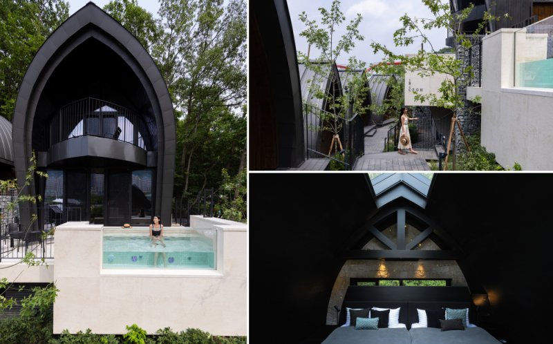 지난 15일 문을 연 '오션월드 빌리지'는 복층 구조의 단독형 객실 8채로 구성됐다.