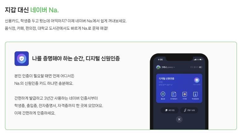"지갑 대신 네이버 모바일 앱 첫 화면 'Na.' 여세요"네이버, 디지털 신원 인증 기능 등 추가해 서비스 개편
