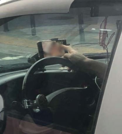 A씨가 공개한 사진에는 한 운전자가 운전석 대시보드 위에 휴대폰을 올려두고 음란 영상을 보며 화면을 손가락으로 만지는 모습이 담겼다.