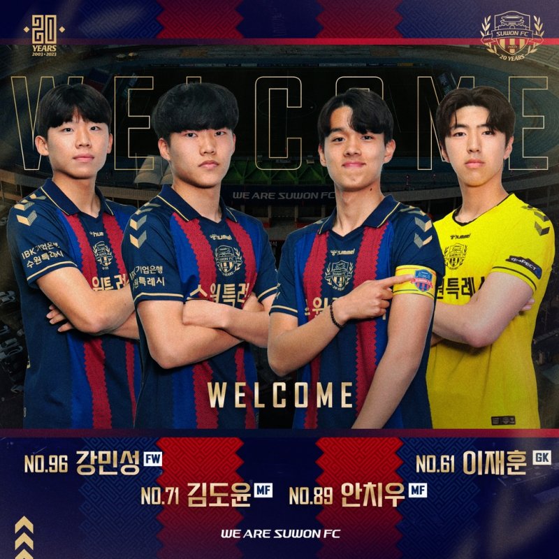 수원FC는 "네 명 모두 2005년생으로 구단 15세 이하(U-15) 팀과 U-18 팀을 거친 선수들"이라고 알렸다.