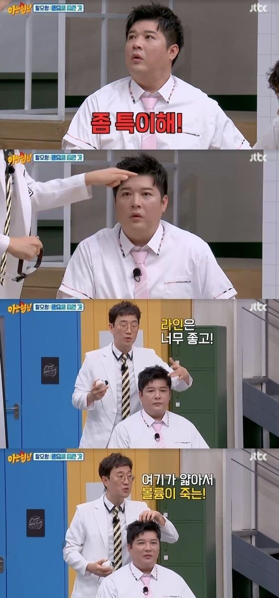 22일 방송된 종합편성채널 JTBC 예능프로그램 '아는 형님'엔 최근 방송인으로 활동 중인 의사 '꽈추형' 홍성우, '탈모형' 한상보, '사랑니형' 김영삼이 나왔다. 한상보는 '아는 형님' 출연자 탈모 상태를 진단했다.