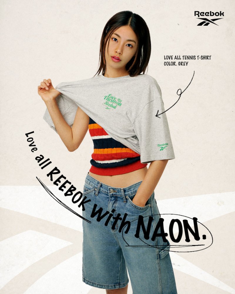나온은 리복의 SS(봄·여름) 주력 아이템인 '하이페리엄 슬라이드 샌들'을 포함해 '벡터 바이커 쇼츠', '더블 벡터 반팔 아노락', '벡터 에센셜 쇼츠', '클럽C85 빈티지', '클럽C 리벤지 빈티지', '로고 크루 삭스' 등 20여 개의 아이템을 다양한 룩으로 연출했다.