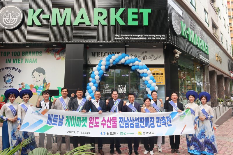 24일 완도군에 따르면 최근 베트남 하노이 소재 케이마켓 내에서 전남도 상설 판매점 입점식과 완도군 해외시장 개척단의 수산 제품 판촉전을 개최했다.