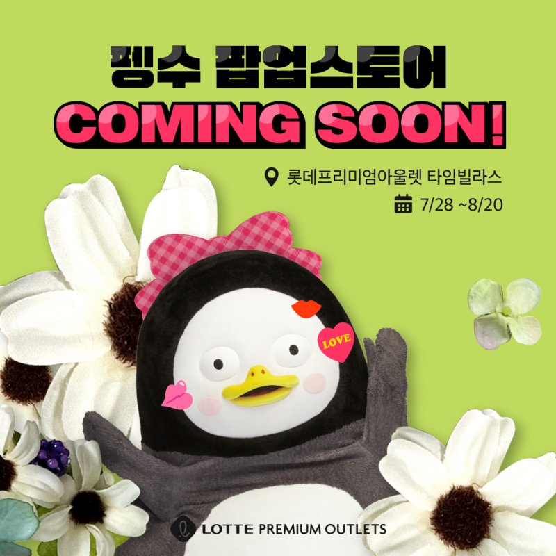 롯데프리미엄아울렛 타임빌라스에서 이달 28일부터 내달 20일까지 펭수 팝업 행사를 진행한다. 9m 높이 '초대형 펭수' 인형과 8m 높이의 '플라잉 펭수', 사인회, 팝업스토어 등이 이어진다.