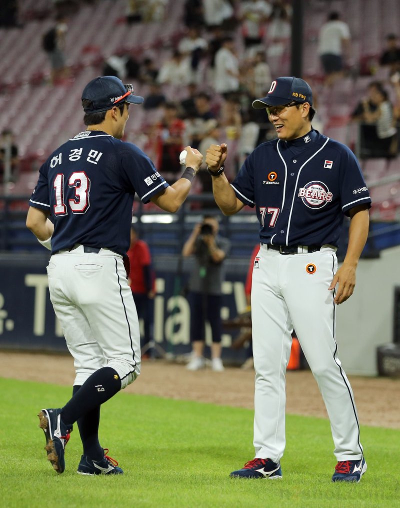 이 감독은 3번타자로 나서는 김재환에 대해 "김재환의 컨디션이 나쁘지 않다. 조금씩 올라오는 단계다. 김재환이 볼넷을 골라내 나갈 수도 있고, 나균안과의 상대 전적도 나쁘지 않다. 양의지 앞에 있으면 팀 공격에 도움이 되겠다고 생각해 배치했다. 좌타자라는 이점도 있다"고 설명했다.