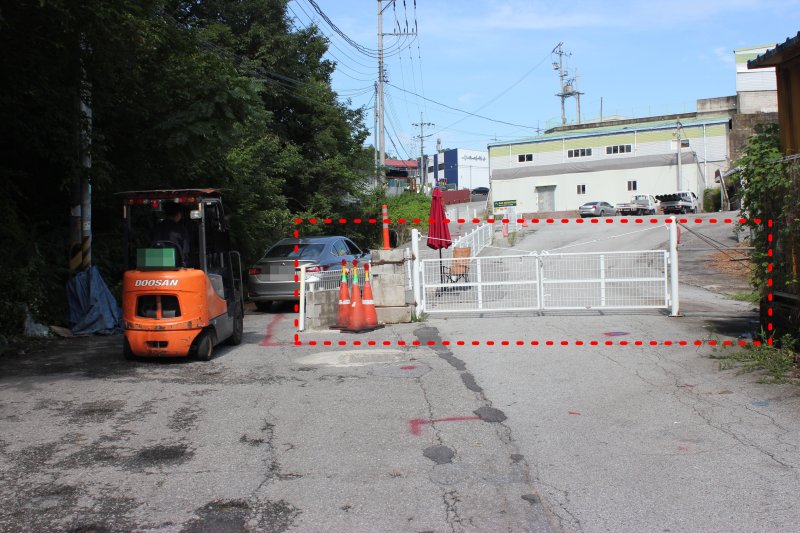 여기는 사유지였지만, 이전 토지 소유자로부터 사용승낙을 받고 중소기업 17개 업체가 진출입로로 사용한 땅이다.